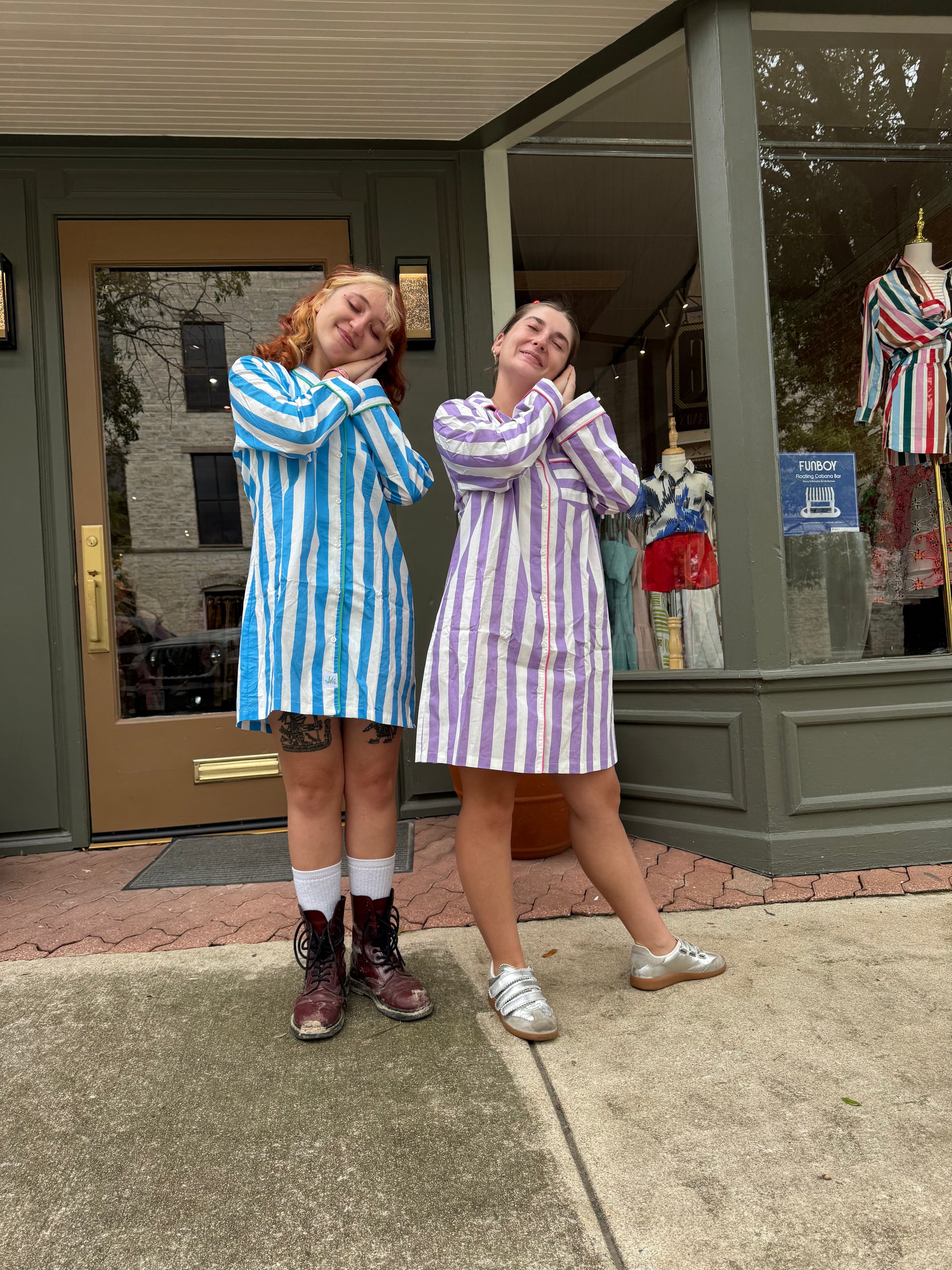 Caryn Lawn Sleep Shirt- Lavender Stripe