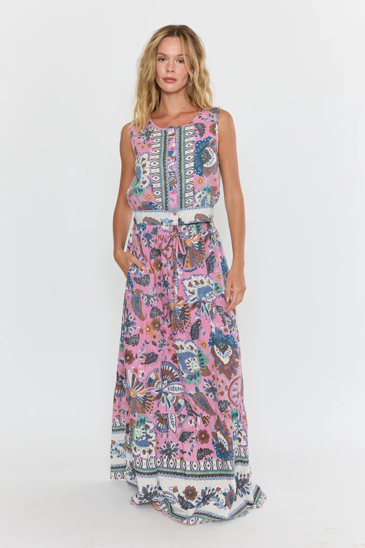 The Farrah Tiered Maxi Skirt brings effortless charm to your wardrobe. Its flowing tiers create a playful silhouette that moves with you, perfect for pairing with a crisp white shirt or the breezy Farrah tank top. Whether you're dressing up or keeping it casual, this skirt adds a touch of fun and femininity to any look.