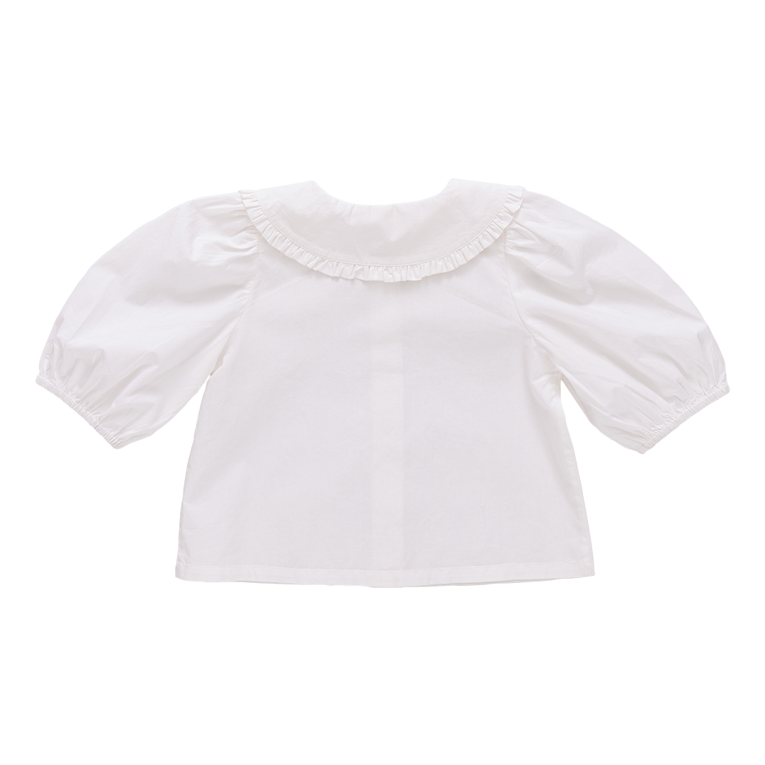 New Style! Our new Girls Noelle Top makes a statement with a classic 3/4 puff sleeve, silver glitter button front closure and peter pan collar embroidered with your favorite Christmas Characters.