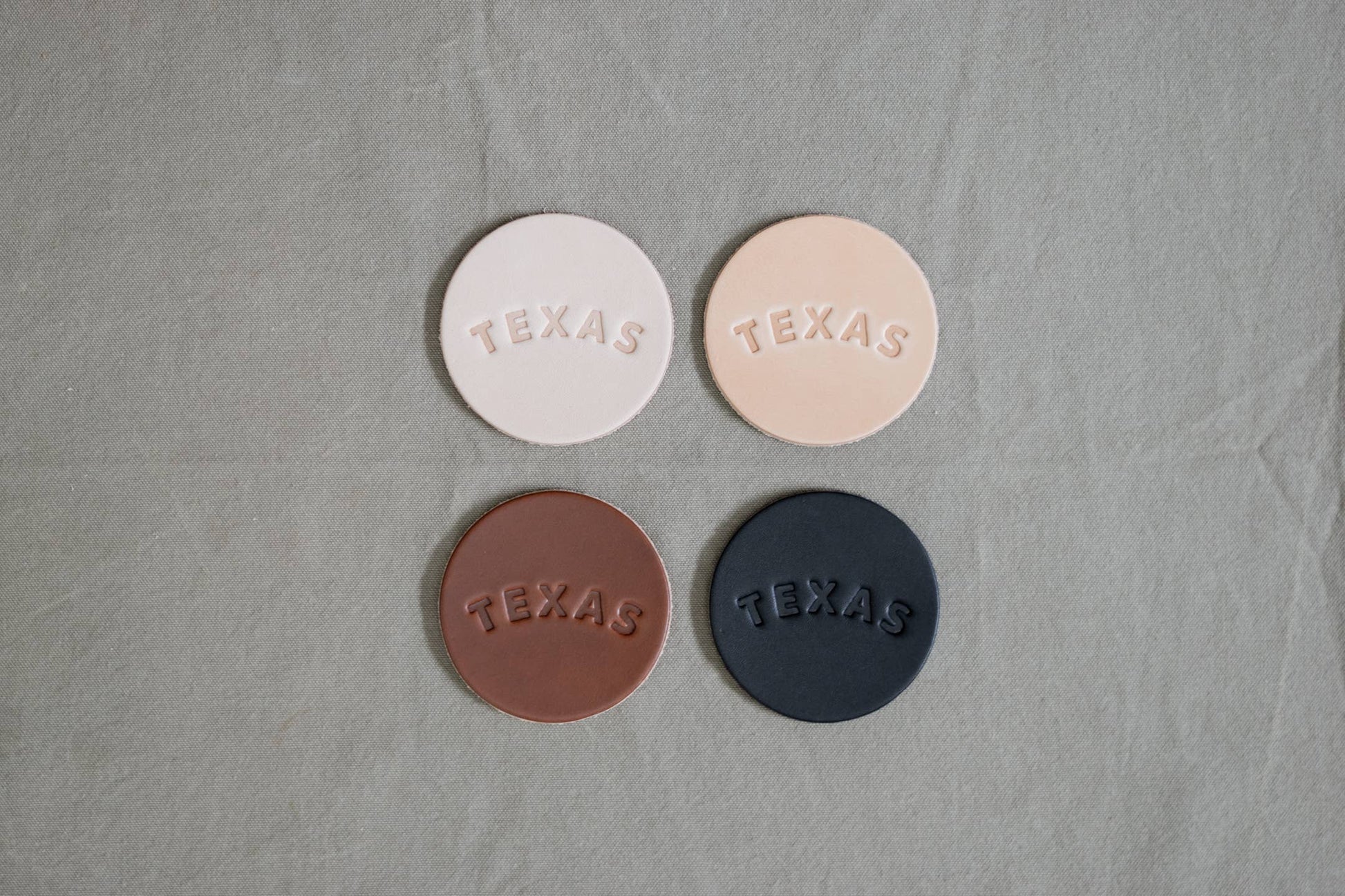 "TEXAS" stamped right in the center. These leather coasters are 100% made in America.